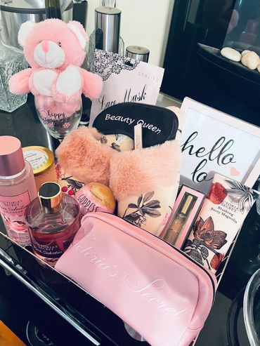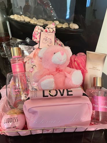 Our store offers the option to select from pre-made gift baskets or customize your own! Our baskets are carefully curated to ensure that we provide the best quality to our customers. All baskets include full sized Victoria’s Secret beauty items along with miscellaneous girly glam goodies and aromatherapy inspired spa accessories. Appropriate for all ages & occasions